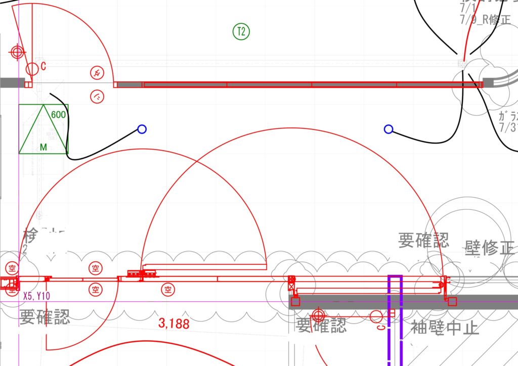 • 扉の仕様変更に伴う高さの変化や、扉自体の設置位置が途中で変更される可能性もあるため、