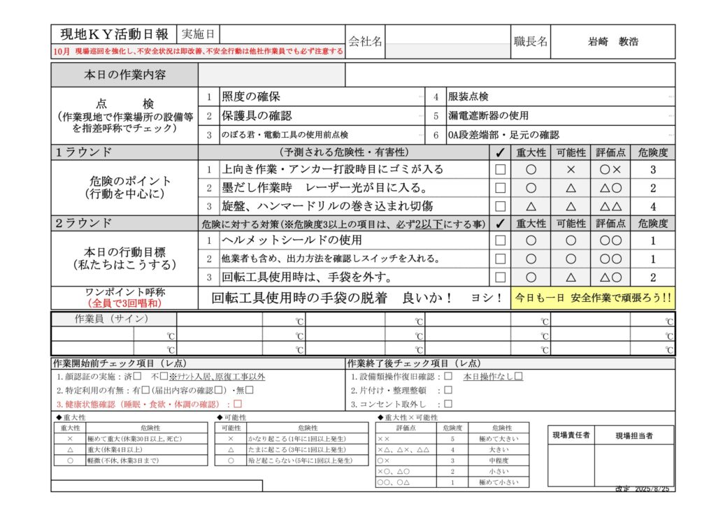 今日はKY用紙についてです。