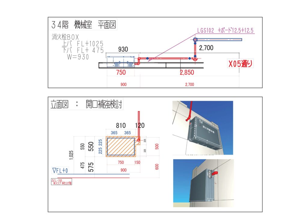 ただし、今回 消火栓は、壁に埋め込みなのですが、