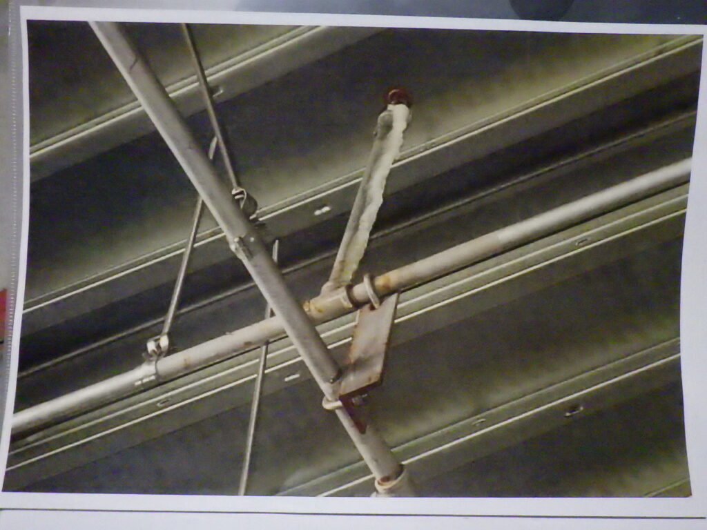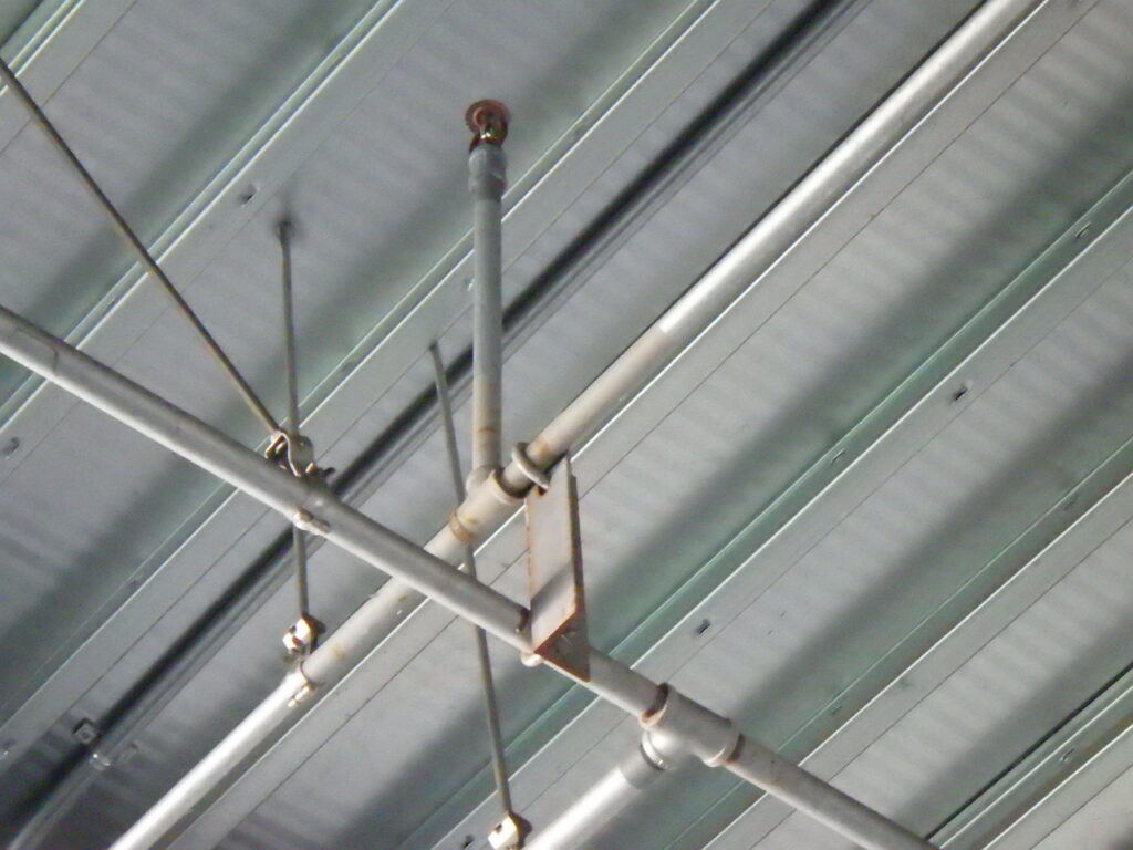 消火配管が凍結し、感知ヘッドからじんわり漏れた水が氷になっていた。