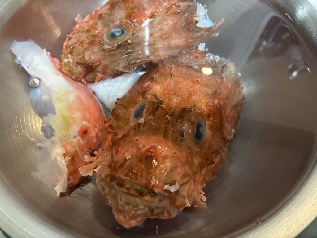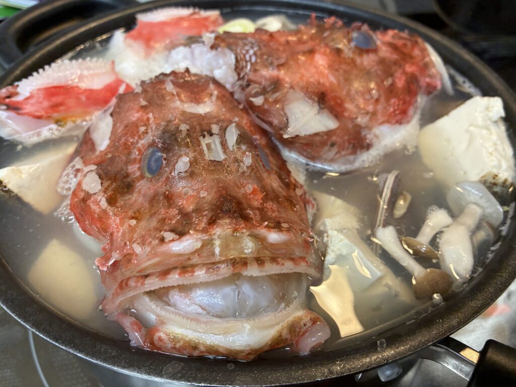 アラでだしを取って、野菜と一緒に鍋に投入。