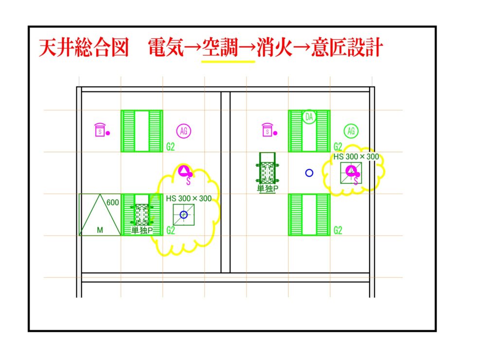本日の私の業務は、天井総合図の対応です。