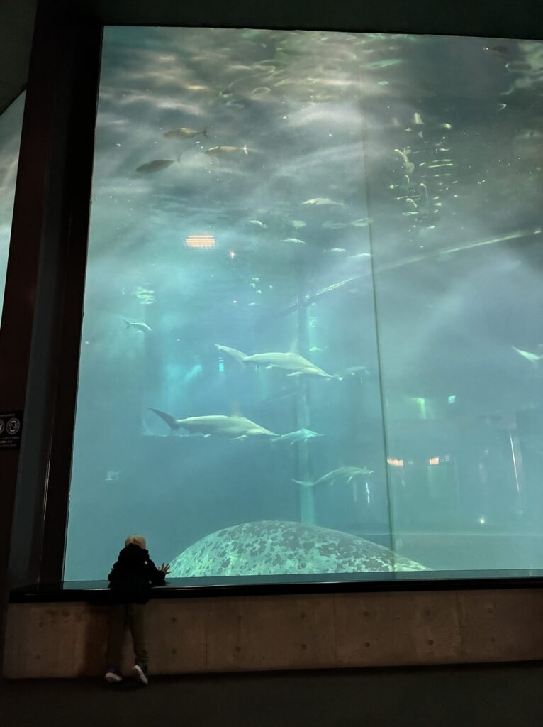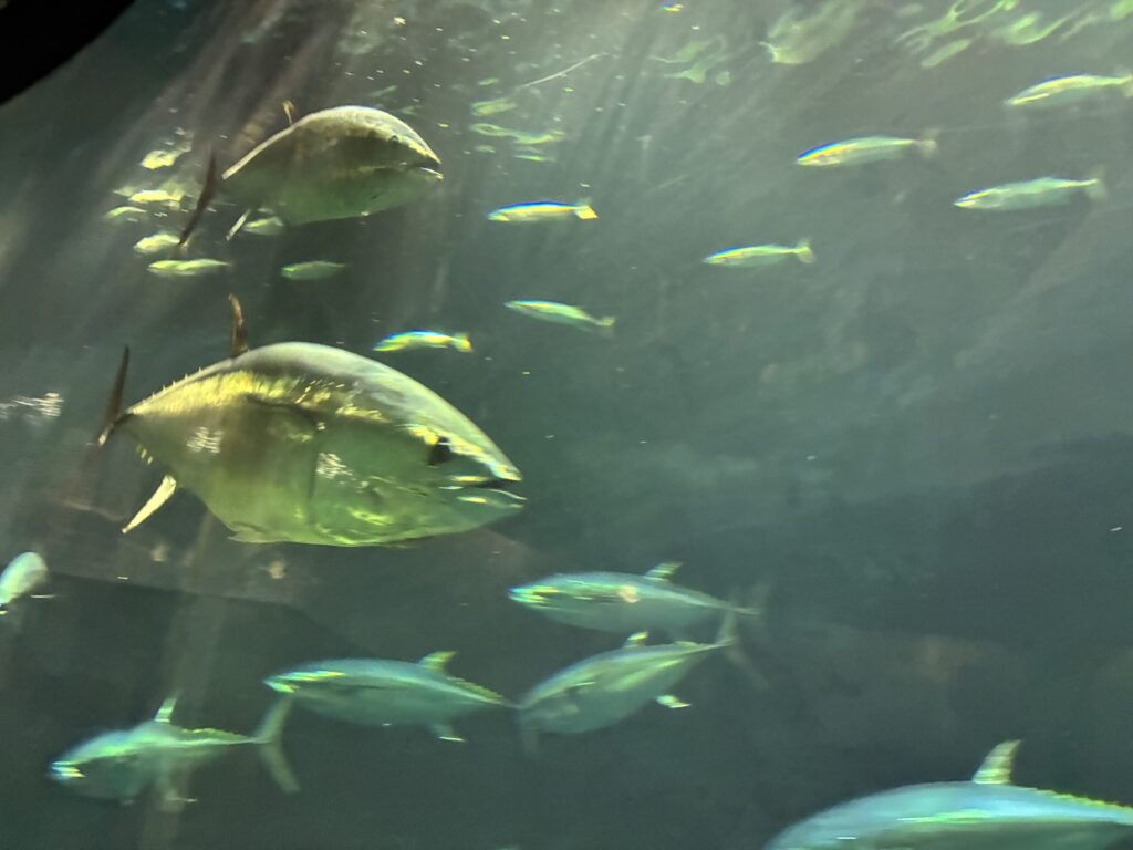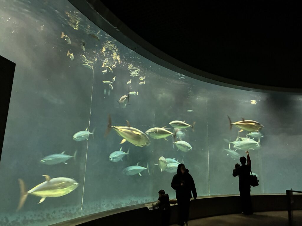 息子はマグロの大水槽に釘付け。