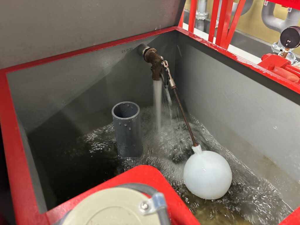スプリンクラー消火設備の水張りを行いました。