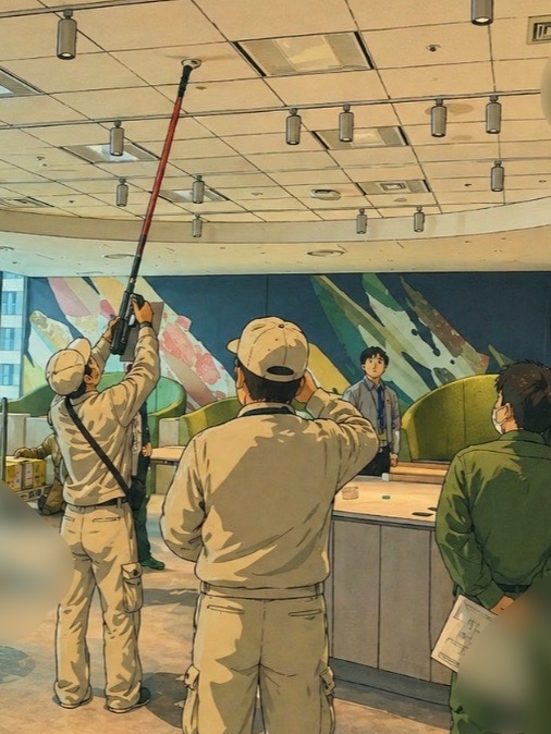 下記は、火災感知器の「あぶり」による作動確認のイメージです。