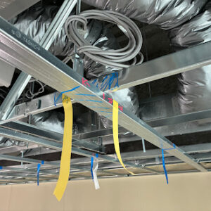 天井解体が行わり、天井LGSや吊り棒がなくなっていく