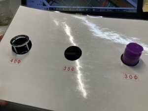 「切削ねじ」と「転造ネジ」があります。 旋盤本体は、共通ですがダイヘッドが変わります。 パイプを、寸法に合わせて切断します。 ・旋盤付属の「パイプカッター」 コマを押し当てながら、溝を作っていくカット ・バンドソー […]