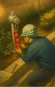 私たちの仕事には 「表示」という大切な業務があります。 配管して終わり、 放水試験をして終わり、 防災連動試験をして 完了── それで仕事が完結するわけではありません。 私たちが扱うのは 「防災設備」です。有事の際に確実 […]